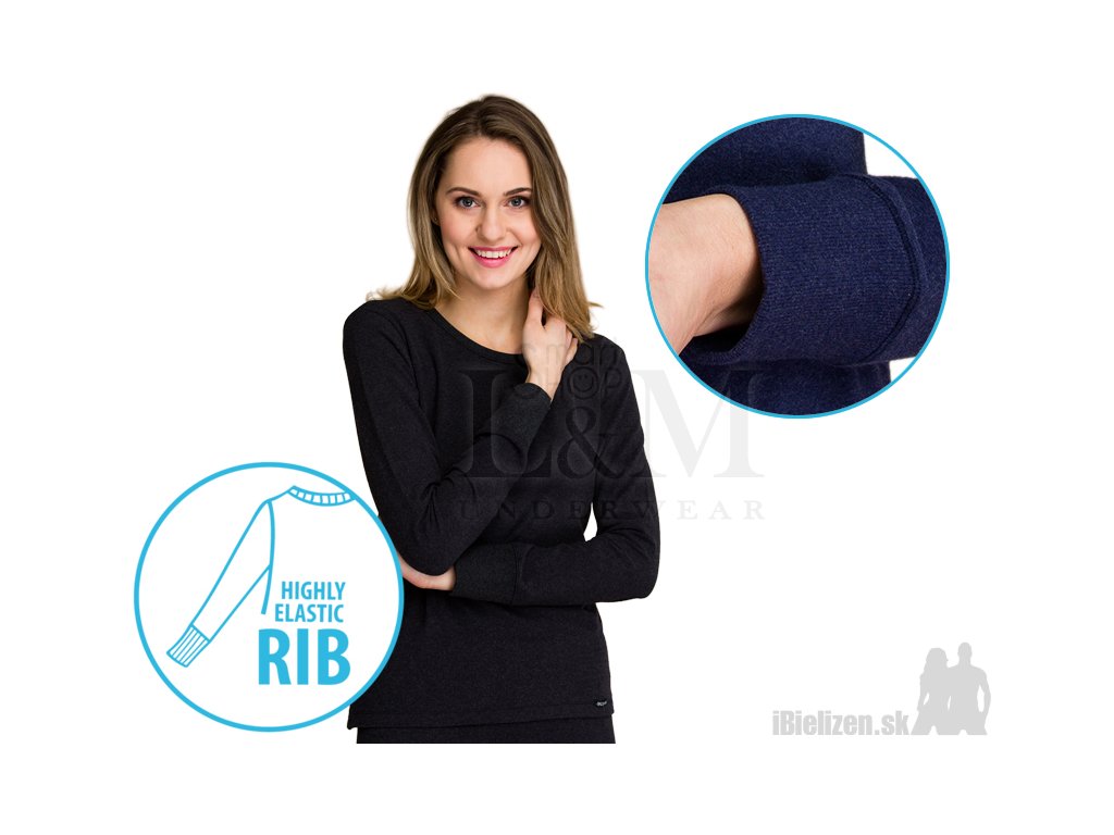 Dámsky termo nátelník s dlhými rukávmi Key LVD729-3 vďaka špeciálnemu tkaniu priadze a švov zaisťuje optimálnu termo reguláciu, ktorá vám zabezpečí teplo a pohodlie počas chladnejšieho ročného obdobia. Dlhé rukávy, a okrúhly výstrih sú lemované vysokoelastickým rebrovaným úpletom. Termo nátelník Key LVD729-3 je zhotovený z vysoko odolného materiálu, ktorý si dobre zachováva pôvodný tvar a farbu aj po mnohonásobne opakovanom praní. Na ľavej strane je našitá textilná etiketa s nápisom KEY. Nátelník prijemne prilieha k telu a drží svoj tvar. Je dostupný v čiernom a tmavomodrom farebnom prevedení.