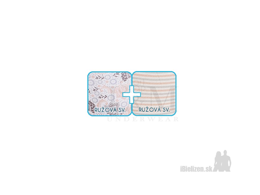 Dámske vzorované nohavičky KEY LPH587 majú bikinový strih s vyššie vykrojenými bokmi, sú vyrobené z jemného bavlneného úpletu typu Cotton-Soft s obsahom bavlny až 95% a podielom elastanu. Légy vpredu a pás nohavičiek majú tenké lemovanie z elastickej čipkovanej lemovky, légy vzadu sú lemované čipkou. Nohavičky majú na ľavom boku malý štítok s nápisom Key, vpredu vľavo malú dekoratívnu mašličku. V dvoj-balení sú dva kusy klasických nohavičiek KEY LPH587 kombinované v dvoch atraktívnych prevedeniach, vzorované kvetmi a pásikované, obe na svetloružovom podklade. Vyššie vykrojené nohavičky optický predlžujú vaše nohy. Prijemný prírodný materiál a prepracovaný strih sú skvelou voľbou pre každú náročnú zákazníčku.