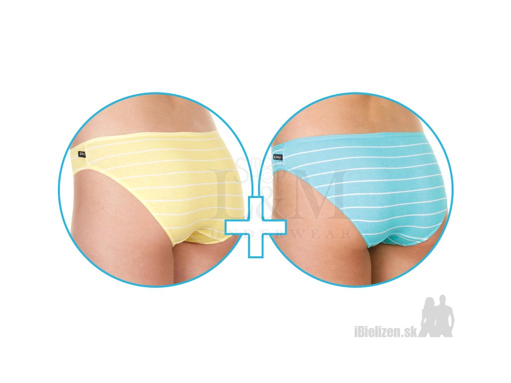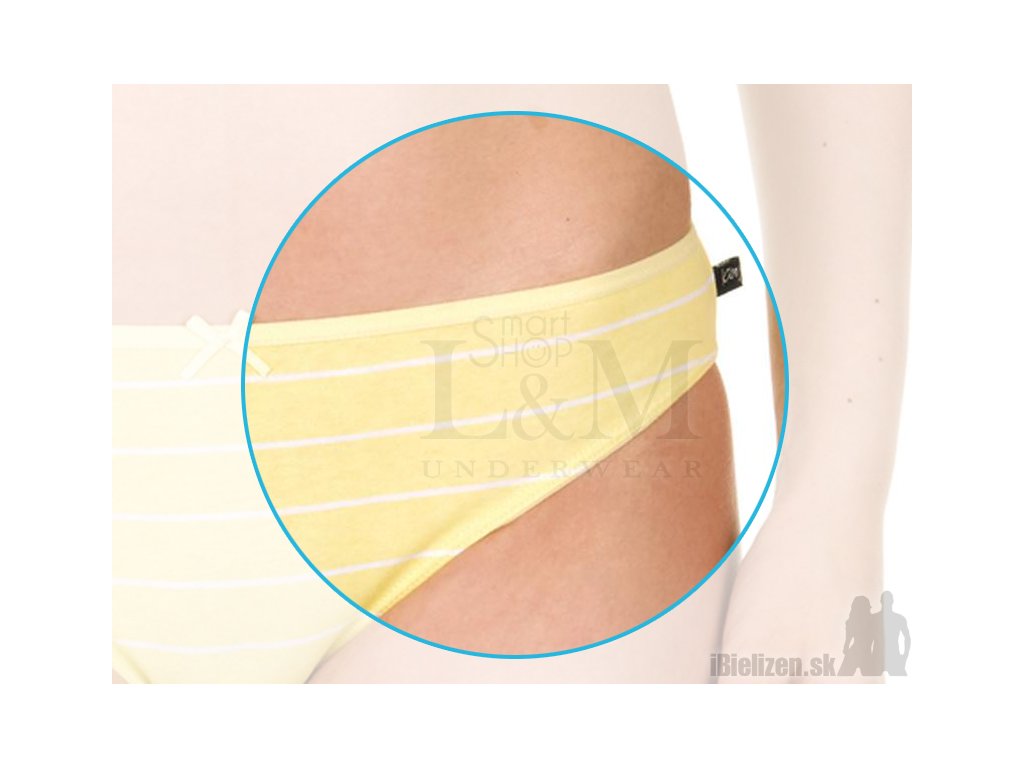 Dámske klasické bavlnené prúžkované nohavičky KEY LPR317 A22 s nižšie položeným pásom a úzkymi bokmi z kolekcie Color, sú zhotovené z jemného bavlneného úpletu s obsahom bavlny až 95% a podielom elastanu. Pruhované nohavičky s jednoduchým lemovaním majú hladký povrch a nenápadné ploché švy. Sú vhodné pre aj pre tehotné ženy na nosenie pod bruškom. V dvoj-balení sú dva kusy klasických nohavičiek KEY LPR317 A22 v dvoch atraktívnych farebných prevedeniach, svetlomodré a žlté. Tieto atraktívne a štýlové nohavičky na každodenné nosenie, môžu byť súčasťou aj vášho bielizníka.
