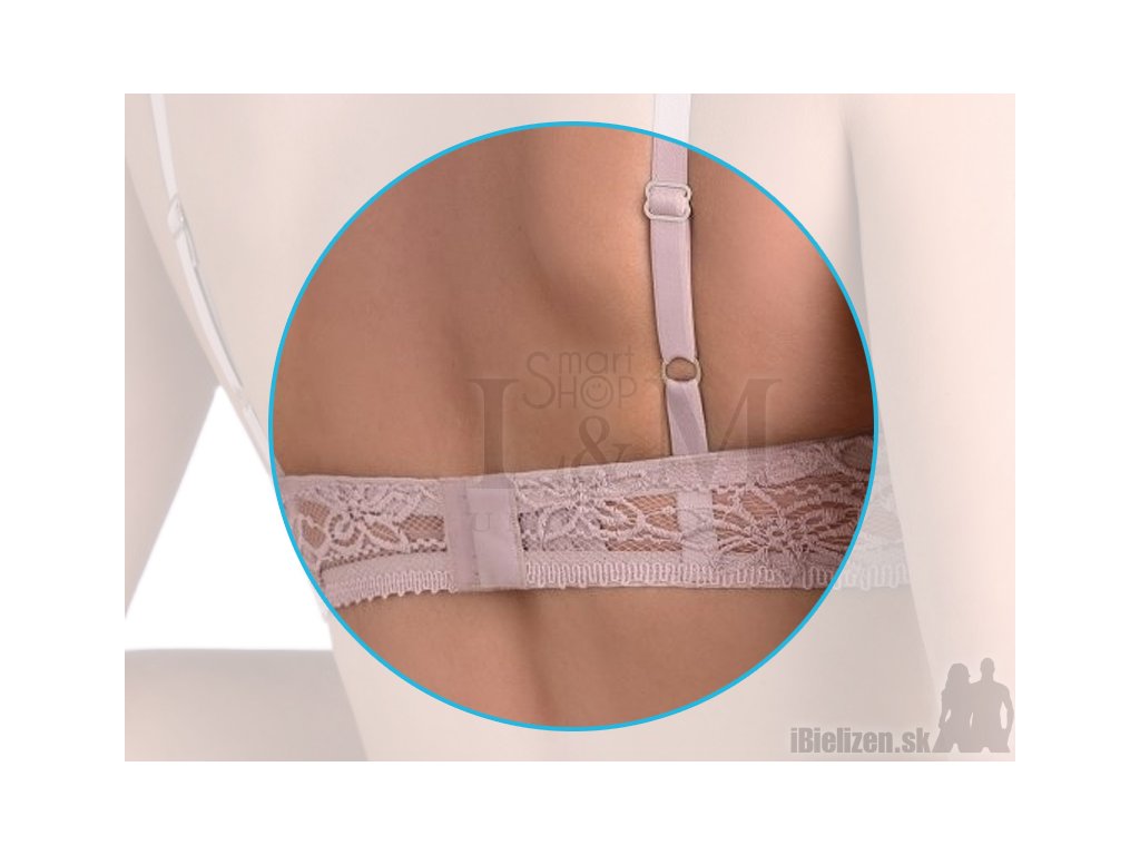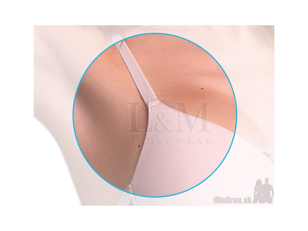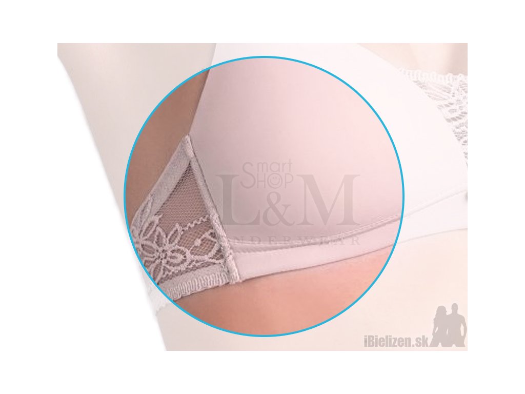 Dámska klasická podprsenka Leilieve C5000 bez kostíc z kolekcie Liberty od Leilieve. Má hladké košíky bez kostíc, medzi košíkmi je vsadená čipka s kvetinovým motívom a štýlová perlička. Obvodový pás je zhotovený rovnako z kvetovanej čipky.