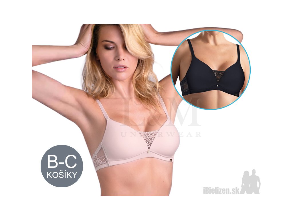 Dámska klasická podprsenka Leilieve C5000 bez kostíc z kolekcie Liberty od Leilieve. Podprsenka je vyrobená z jemného veľmi príjemného mikrovlákna kombinovaná s exkluzívnou čipkou. Má hladké košíky bez kostíc, medzi košíkmi je vsadená čipka s kvetinovým motívom a štýlová perlička. Obvodový pás je zhotovený rovnako z kvetovanej čipky. Má dvojradové zapínanie na štyri pozície. Podprsenka Leilieve Liberty C5000 má neodnímateľné dĺžkovo nastaviteľné látkové ramienka štandardnej šírky. Je dostupná v telovom a čiernom farebnom prevedení s veľkosťou košíkov B až C. Krásne podprsenka na každú príležitosť. Môže byť aj vaša, stačí ak si ju pridáte do nákupného košíka.
