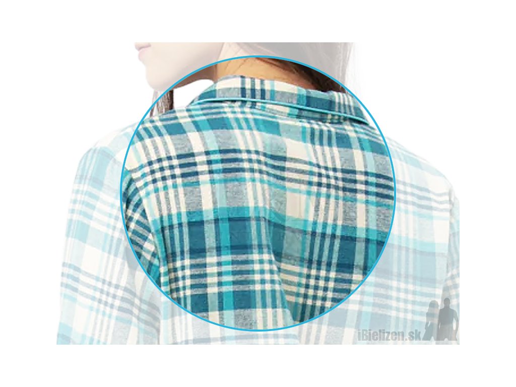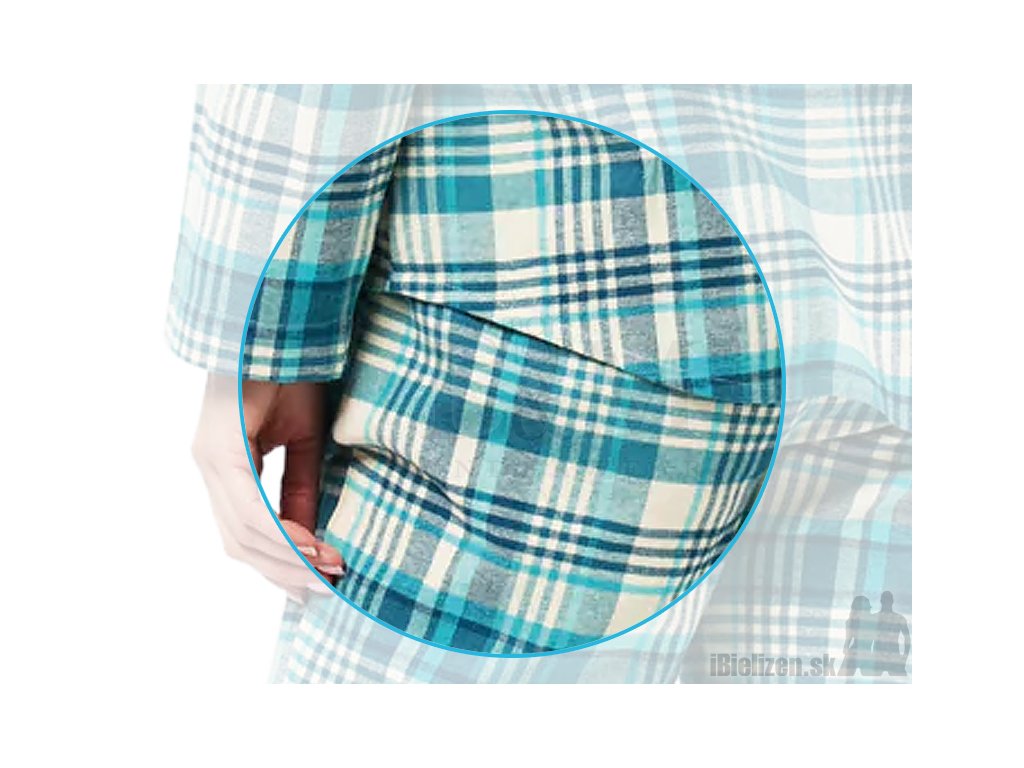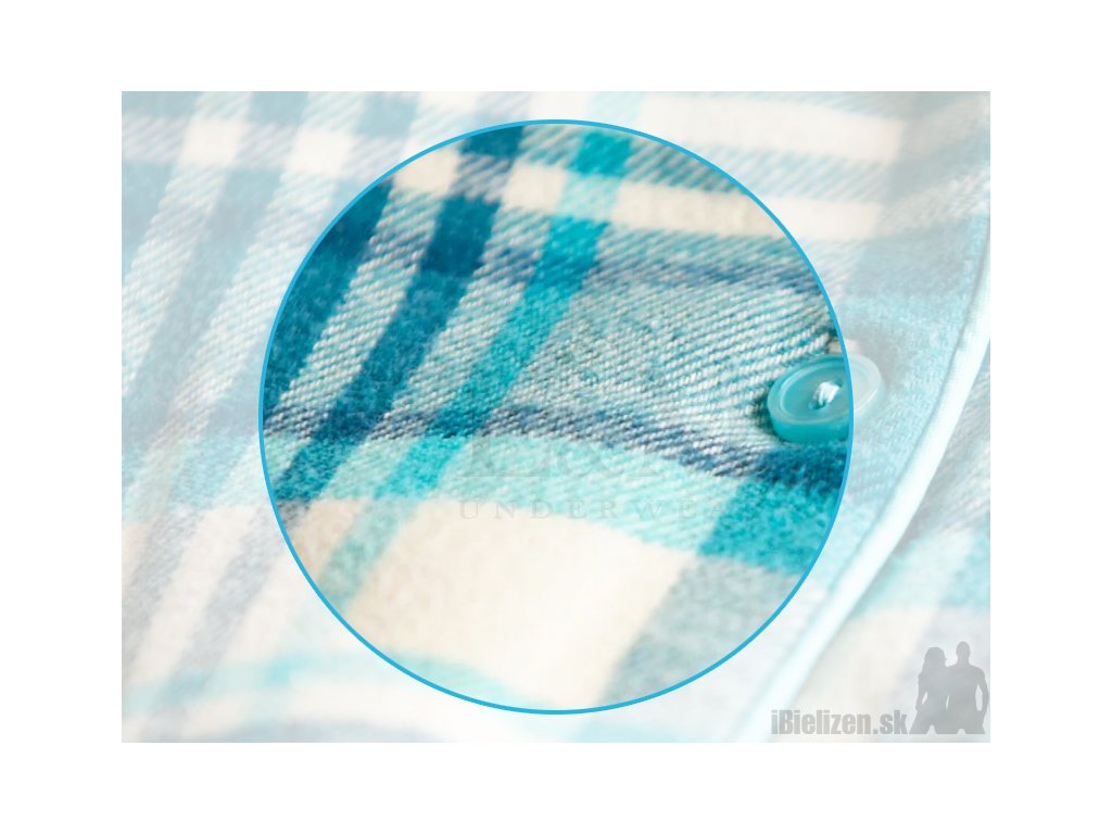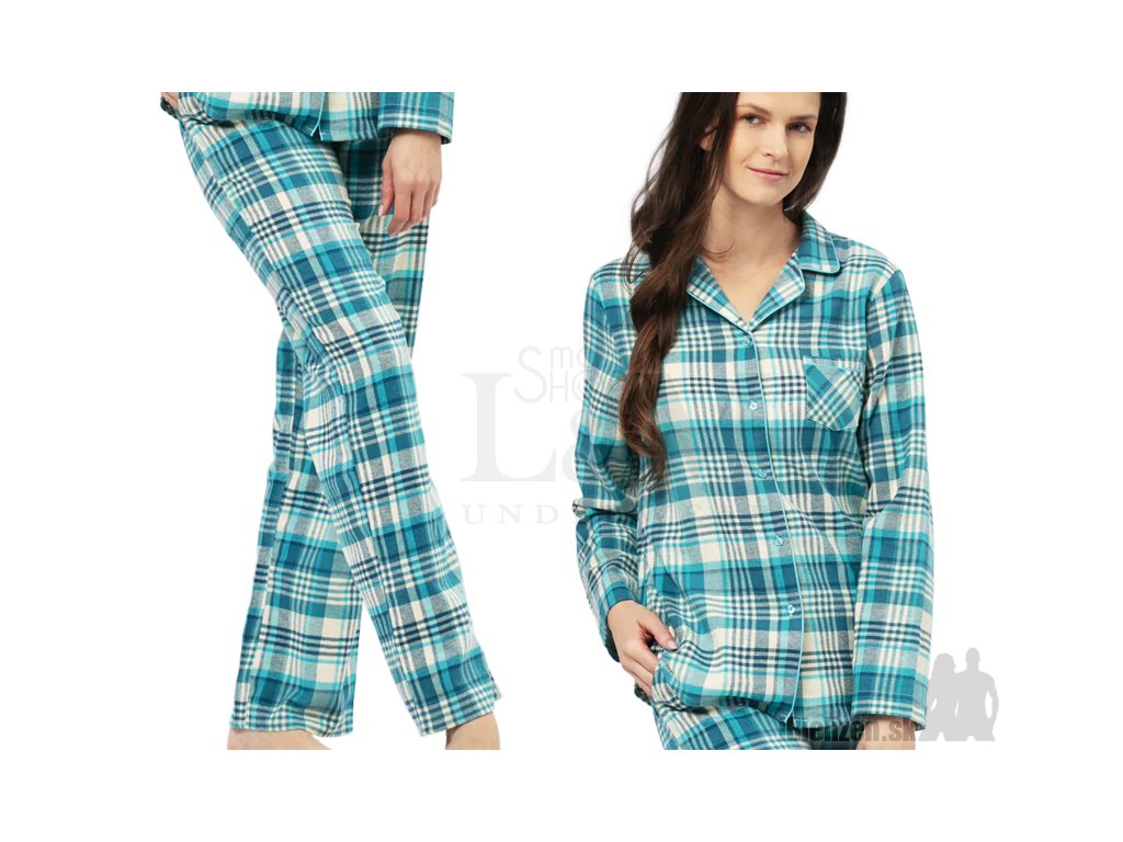 Dámske dvojdielne flanelové kárované pyžamo KEY LNS471 B24 zhotovené zo 100%-nej bavlny Cotton Flannel 135 g/m2. Prírodná bavlnená, mäkká a hrejivá tkanina je priedušná a prijemná k telu a pohodlná na nosenie. Horný diel, flanelová pyžamová košeľa s dlhými rukávmi, V-výstrihom s golierom, vpredu so zapínaním na gombíky, na prsiach vľavo je malé vonkajšie vrecko. Rukávy a dolný okraj majú jednoduché lemovanie. Dolný diel dámskeho károvaného pyžama KEY LNS471 B24 sú dlhé flanelové pyžamové nohavice, majú sťahujúcu gumu v páse, po bokoch sú vrecká. Celé pyžamo má vodorovné karovanie v tyrkysových odtieňoch. Použitý prírodný materiál je veľmi pohodlný a prijemný, kvalita dielenského spracovania, atraktívny strih a štýlové prevedenie spĺňajú aj tie najnáročnejšie požiadavky našich zákazníčok. Páči sa vám? Tak si ho pridajte do nákupného košíka.