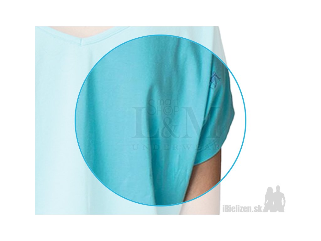 Dámske dvojdielne vzorované pyžamo KEY LNS914 je vyrobené z mäkkého a príjemného bavlneného úpletu s podielom bavlny až 95%. Horný diel, jednofarebné tričko s voľnými krátkymi rukávmi a väčším V-výstrihom. Vpredu na hrudi je dominantný motív levandúľ a nápis LAVENDER. Dolný diel dámskeho pyžama KEY LNS914 sú ležérne vzorované pyžamové šortky, so sťahujúcou gumou v páse, po bokoch majú praktické vrecká. Dvojdielne dámske pyžamo má tričko vo svetlomodrom prevedení s veľkým motívom na hrudi, šortky majú štýlové vzorovanie. Použitý prírodný materiál dámskeho pyžama je veľmi prijemný k telo, kvalitné spracovanie, prepracovaný strih a štýlové prevedenie ocenia aj náročné zákazníčky.