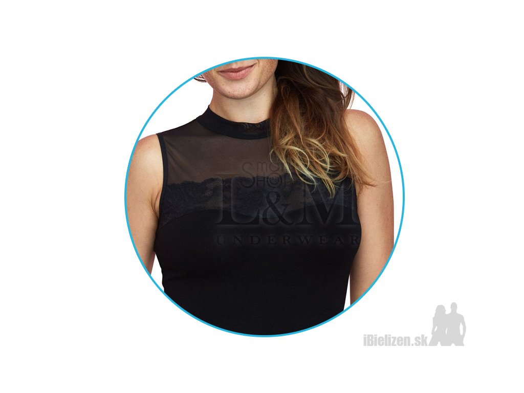 Dámske body bez rukávov a stojačikom ku krku Gaia BDV135 z kolekcie Vestiva. Dekolt a horná časť chrbta je z jemného tylu, v dekolte v kombinácií s čipkou. Nohavičková časť dámskeho body je v hladkom prevedení. Bezrukávová časť je tenko lemovaná, vzadu na ramenách je lemovanie štýlovo pretočené. Dámske body Gaia BDV135 je vyrobené z prijemnej viskózy kombinovanej s polyamidom a elastanom. Rafinovaná kombinácia s krajkou a jemným tylom je veľmi štýlová. Nohavičková časť má klasický strih so zapínaním v spodnej časti.
