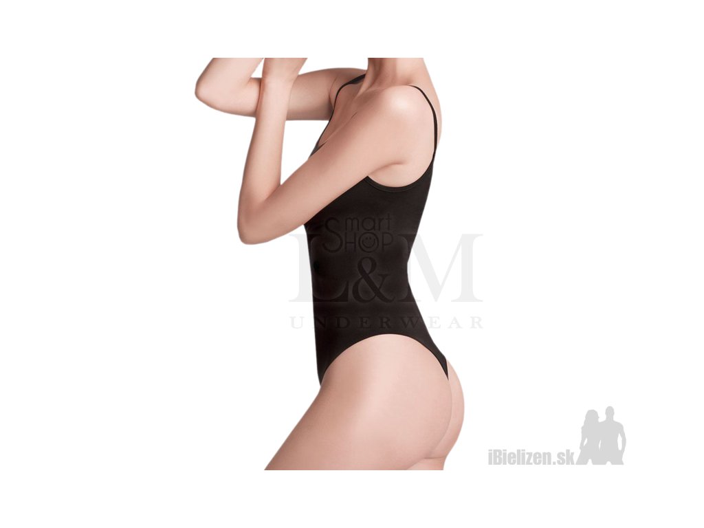 Dámske body Gatta Body Camisole String s tenkými špagetovými ramienkami, vyrobené z kvalitného mikrovlákna s obsahom elastanu. Nohavičková časť má tangový strih. Body má hodvábny lesk, nemá bočné švy, je preto vhodné aj pod priliehajúce oblečenie.