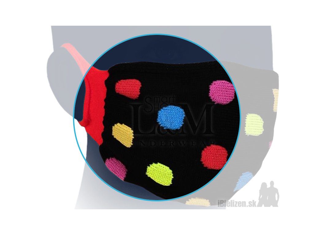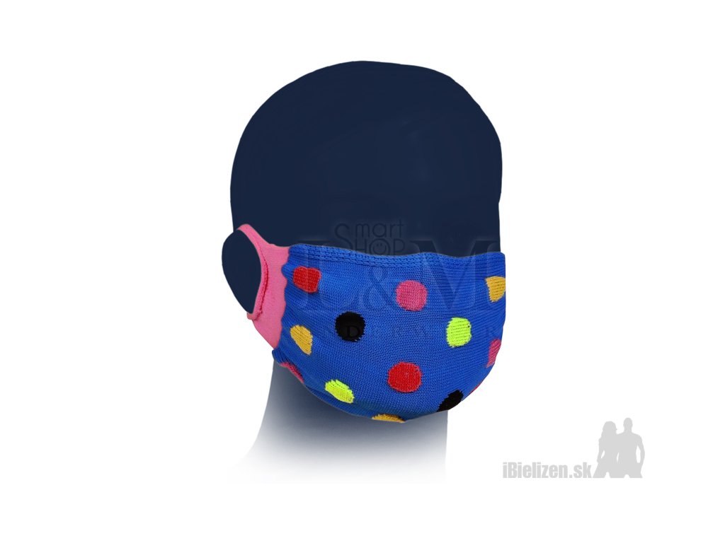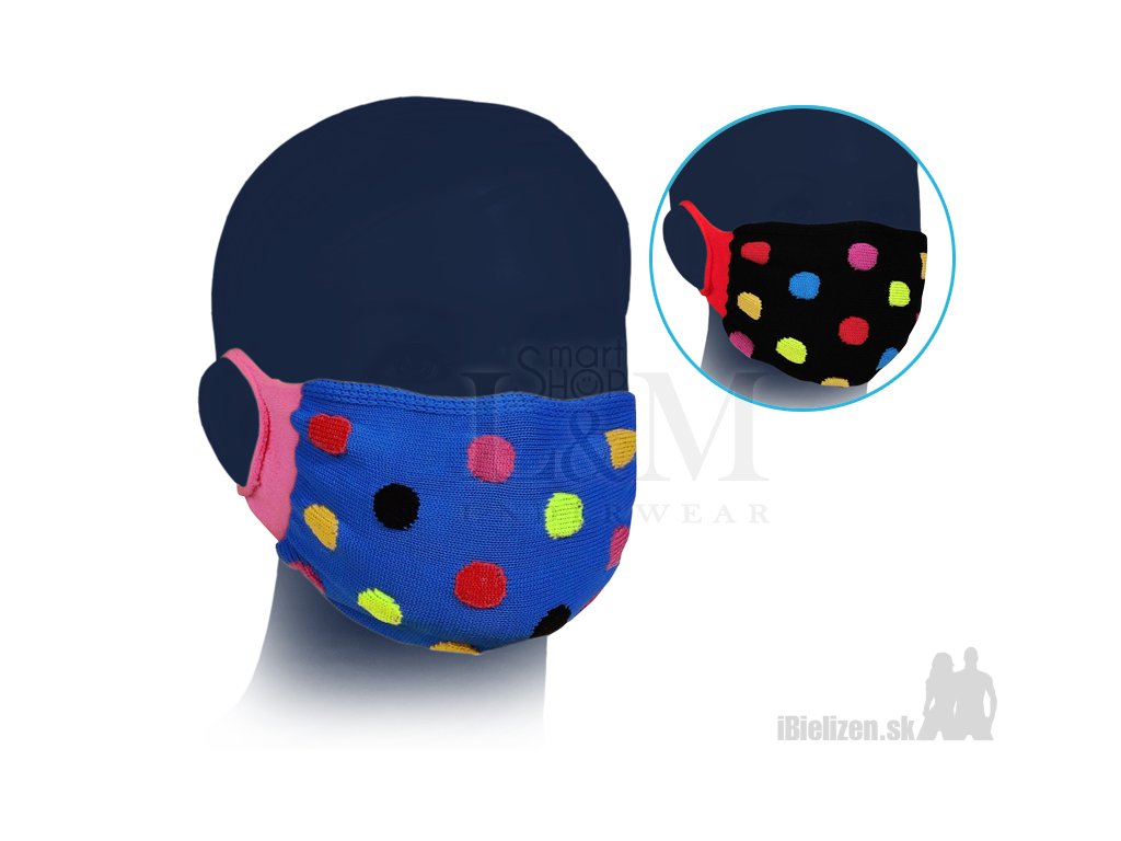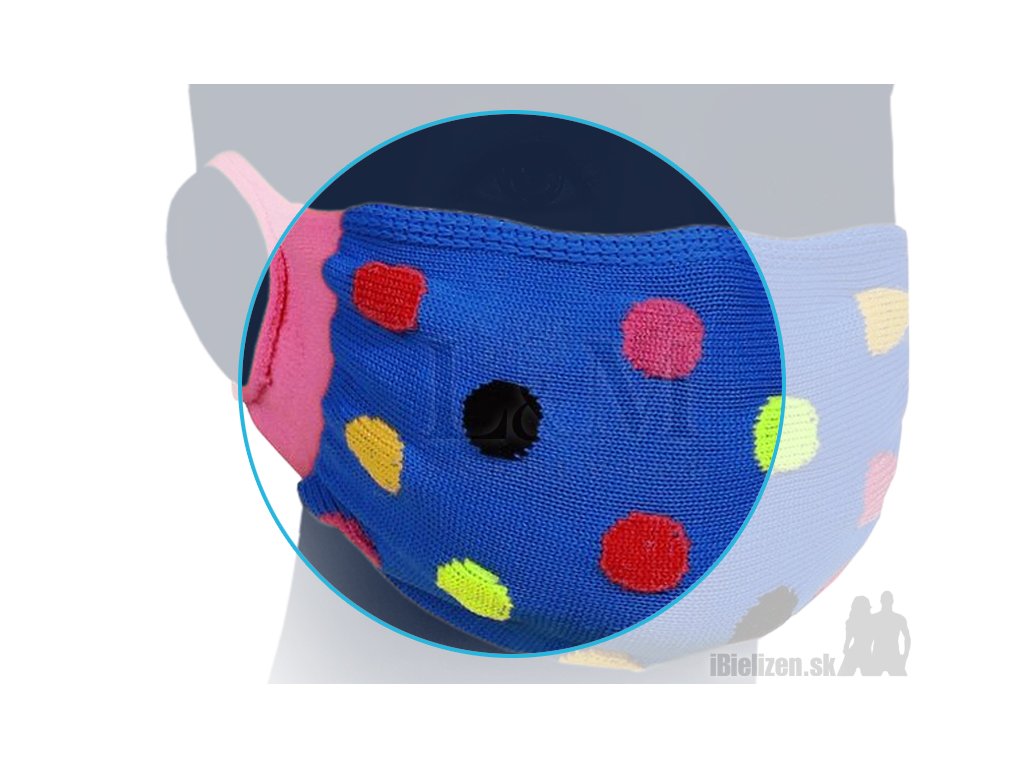 Vzorované bodkované detské ochranné rúško Wola Dots s väčšími bodkami a vyberateľnou filtračnou vložkou. Je zhotovené z polypropyleno-polymidového vlákna s podielom elastanu. Bezšvové dvojvrstvové ochranné rúško je dostupné v modrom a čiernom farebnom prevedení s väčšími rôznofarebnými bodkami a v jednej univerzálnej veľkosti pre deti vo veku od 4 do 10 rokov. Úpletový úchyt za uši je veľmi pohodlný, netlačí ani počas celodenného nosenia. Štýlové detské ochranné rúško Wola Dots z prijemného materiálu, pohodlné strihové, konštrukčné a bezšvíkové prevedenie je ideálne na každodenné nosenie.