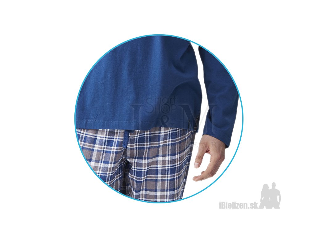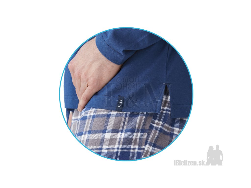 Pánske pyžamo KEY MNS405 je vyrobené z mäkkého a príjemného bavlneného úpletu. Jednofarebný horný diel má okrúhly výstrih a malý štítok s nápisom KEY vľavo dole. Dolný diel pánskeho pyžama KEY MNS405 tvoria ležérne karované pyžamové nohavice so sťahovaním v páse na šnúrku. Pyžamové nohavice majú po oboch stranách praktické všité vrecká. Spolu s horným dielom tvoria atraktívnu pyžamovú súpravu. Použitý materiál pánskeho pyžama je veľmi prijemný na dotyk, pričom spolu s kvalitným spracovaním a prepracovaným strihom uspokojí požiadavky aj náročného zákazníka.