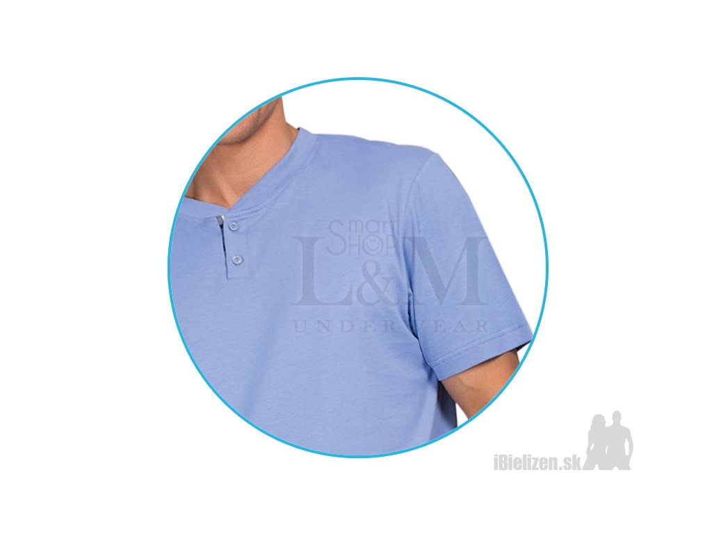 Pánske dvojdielne pyžamo KEY MNS470 je vyrobené z mäkkého a príjemného 100%-ného bavlneného úpletu typu Cotton-Jersey&textile. Horný diel tvorí polokošeľa s krátkymi rukávmi so zapínaním na dva gombíky. Dolný diel pánskeho pyžama KEY MNS470 tvoria pohodlné kárované pyžamové šortky, majú sťahujúcu gumu a šnúrku v páse, po bokoch sú praktické vrecká. Šortky a polokošeľa tvoria pohodlnú a štýlovú pánsku pyžamovú súpravu počas teplejších dni. Použitý 100%-ne prírodný materiál pánskeho pyžama je pohodlný a prijemný k telu, kvalitné spracovanie a prepracovaný strih ocení každý náročný zákazník.