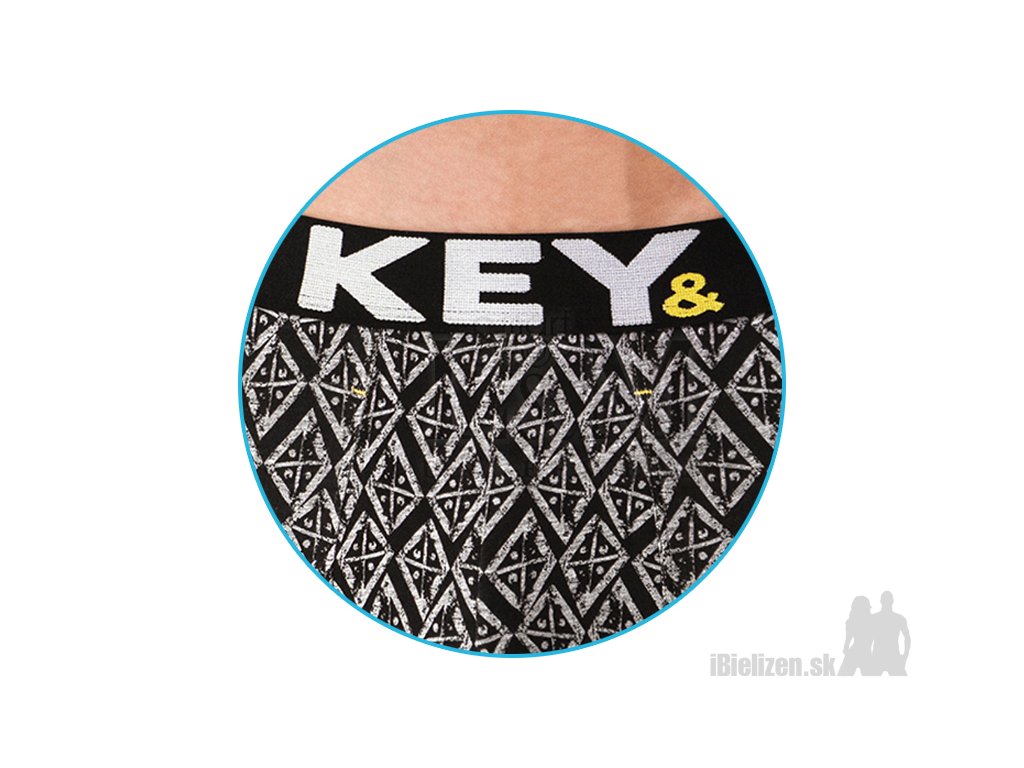 Pánske vzorované boxerky Key MXH073 z kolekcie Color od Key sú vyhotovené z jemného bavlneného úpletu typu Cotton-Soft s obsahom bavlny až 95% a podielom elastanu. Boxerky sú hladké vzorované s atraktívnym geometrickým vzorom v čiernom prevedení. Komfort pri nosený zvyšuje použitie pohodlných plochých švov. Širšia guma v páse je prijemná k telu s veľkým nápisom KEY. Pánske vzorované boxerky Key MXH073 majú hladký povrch, vďaka podielu elastanu skvelo padnú každému a držia svoj tvar. Kvalitný materiál a strih, tiež atraktívne prevedenie so štýlovou širokou gumou v páse, ocení každý náročný zákazník.