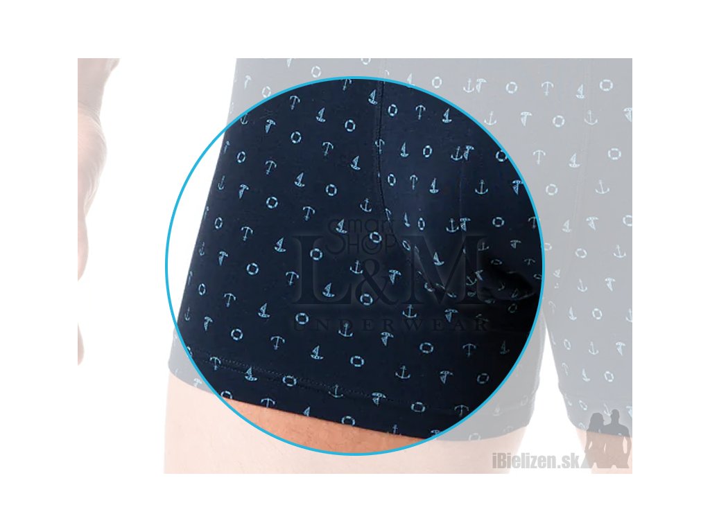 Pánske bavlnené vzorované boxerky Key MXH901 A24 z kolekcie Color od Key sú vyhotovené z jemného bavlneného úpletu Cotton Soft s podielom bavlny až 95% a prídavkom elastanu. Boxerky majú štandardnú dĺžku lég, v páse nevšitú gumu s malým štítkom KEY, majú hladký vzorovaný povrch. Boxerky Key MXH901 A24 sú dostupné v dvoch atraktívnych farebných prevedeniach, tmavomodré a modré, obe s potlačou malých plachetníc, lodných kotiev a záchranných kolies. Kvalitný materiál a strih sú zárukou, že vám perfektne padnú. Výnimočné mäkká zušľachtená antialergická bavlna so zníženou krčivosťou a vysokou absorpciou telesnej vlhkosti je veľmi prijemná k telu. Štýlové prevedenie uspokojí požiadavky každého náročného zákazníka. Ploché švy zvyšujú váš komfort počas nosenia, sú takmer neviditeľné pod priliehavým oblečením. Tak si vložíte tento štýlový kúsok do nákupného košíka!