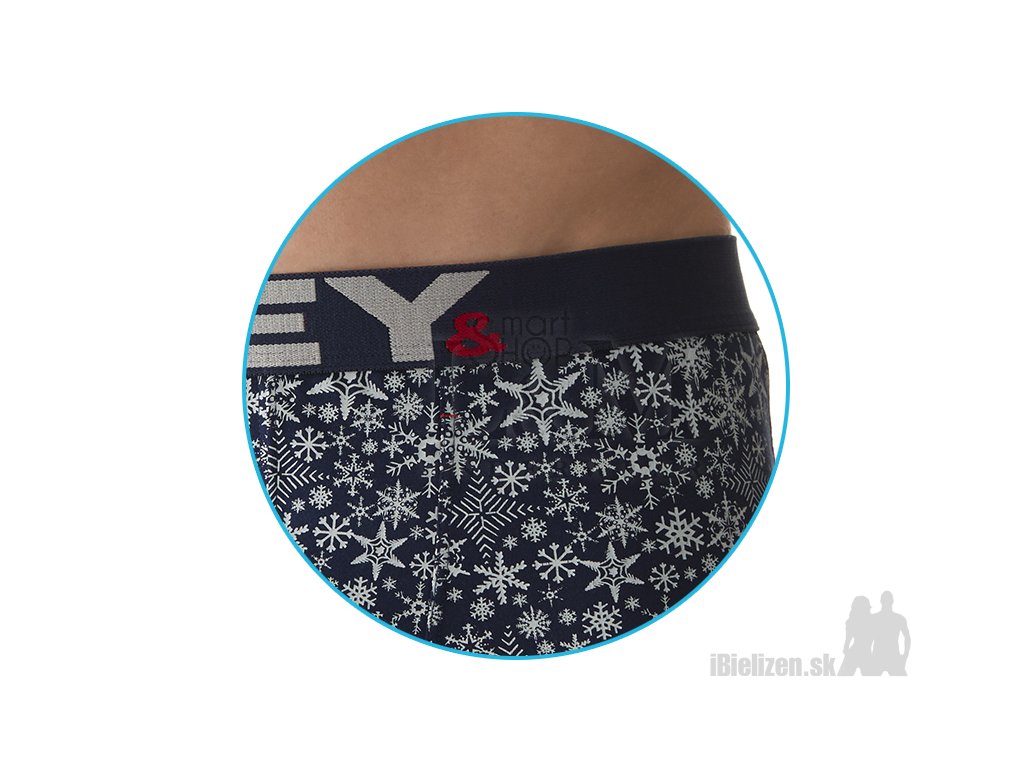 Pánske boxerky Key MXH922 z kolekcie Color od Key sú vyhotovené z bavlny s podielom elastanu. Boxerky sú s atraktívnym motívom snehových vločiek. Kvalitný materiál a strih sú zárukou vašej spokojnosti. Komfort pri nosený zvyšuje použitie plochých švov. Širšia guma v páse má veľký efektný nápis KEY. Pánske boxerky Key MXH922 majú hladký povrch, vďaka podielu elastanu dokonale priliehajú k telu a držia svoj tvar.