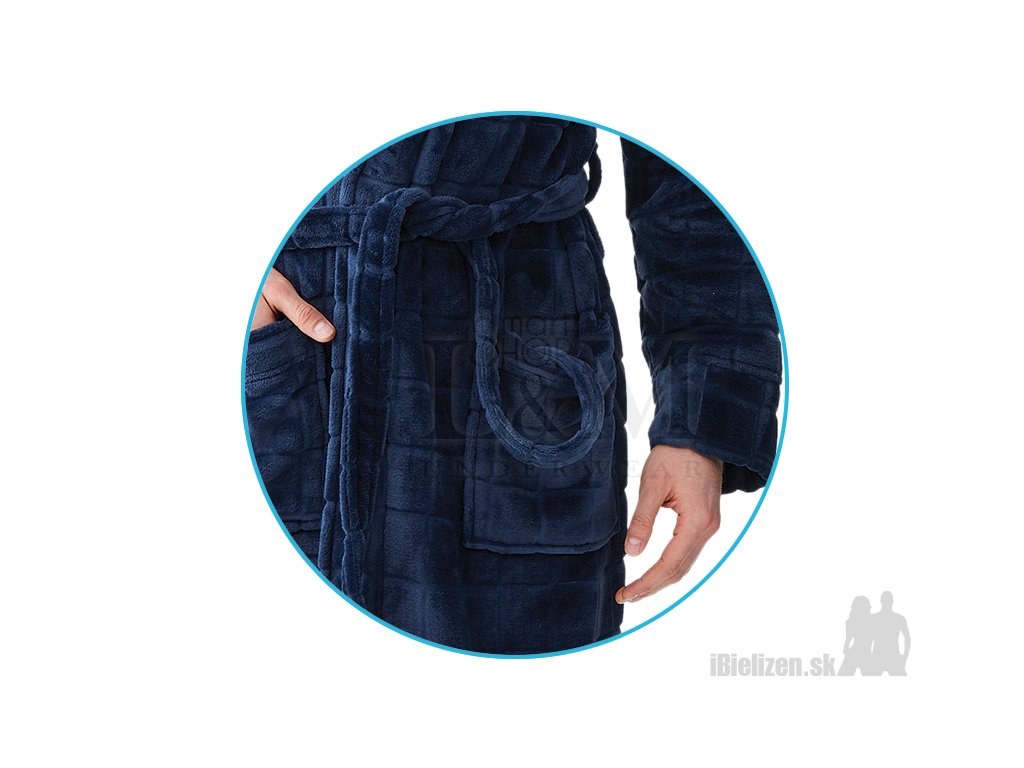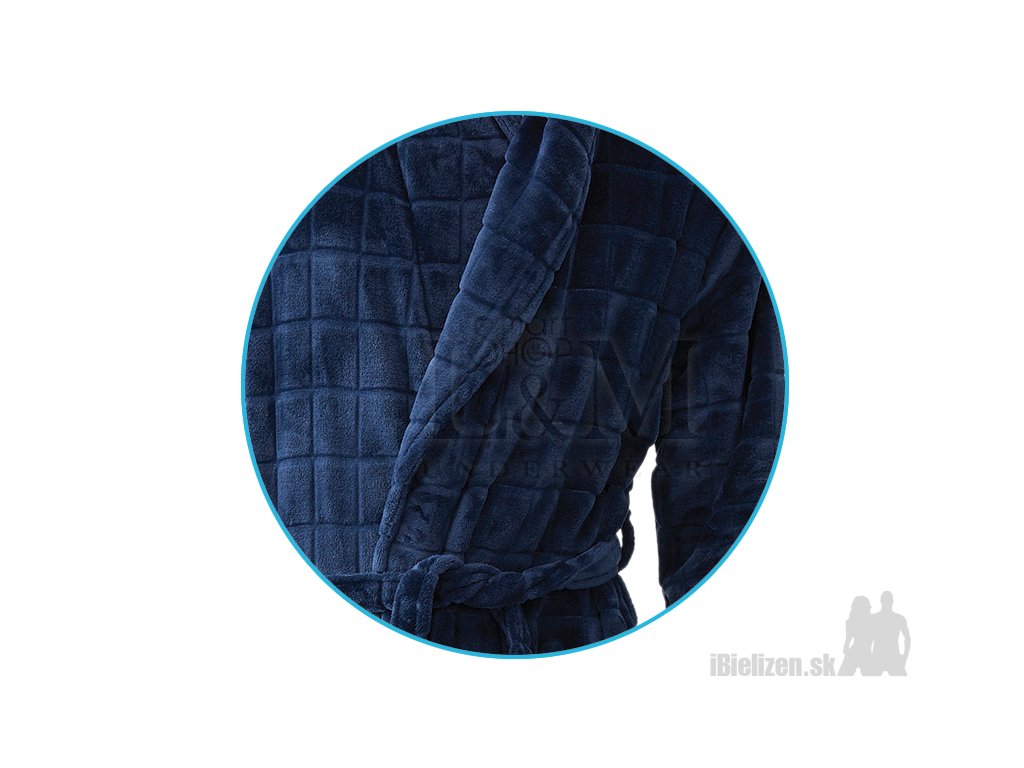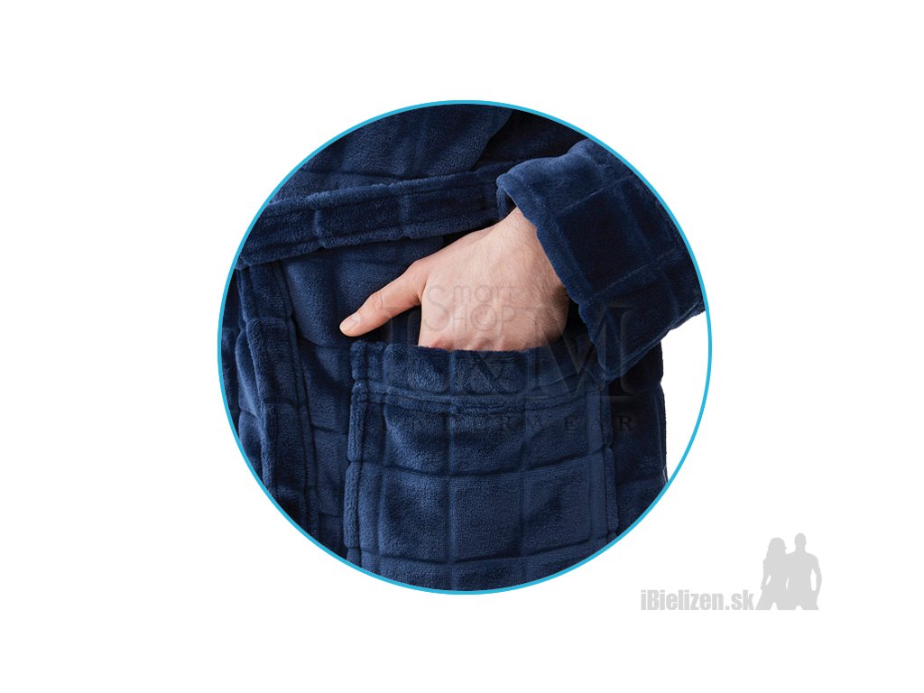 Pánsky župan bez kapucne KEY MGL240 je vyrobený z mäkkého a príjemného úpletu typu Velvet-Fleece-megasoft má dĺžku pod kolená. V páse sa zaväzuje odnímateľným opaskom, po oboch stranách má praktické vonkajšie vrecká. Tmavo modré prevedenie s väčšími embosovanými štvorcami pôsobí elegantne a štýlovo. Použitý materiál pánskeho županu KEY MGL240 je veľmi prijemný na dotyk, pričom spolu s kvalitným spracovaním uspokojí požiadavky aj náročného zákazníka.