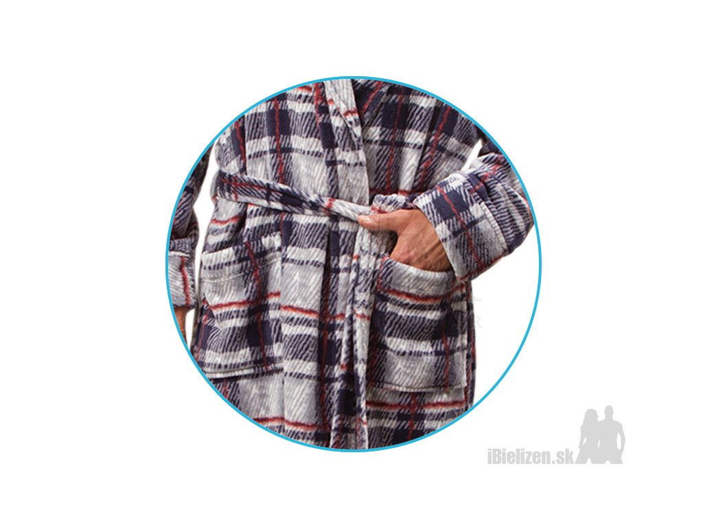 Pánsky župan bez kapucne KEY MGL495 je vyrobený z mäkkého a príjemného úpletu typu coral-fleece má dĺžku pod kolena. V páse sa zaväzuje odnímateľným opaskom, po oboch stranách má praktické vonkajšie vrecka. Veľké karovanie pôsobí štýlovo a športovo zároveň. Použitý materiál pánskeho županu KEY MGL495 je veľmi prijemný na dotyk, pričom spolu s kvalitným spracovaním uspokojí požiadavky aj náročného zákazníka.